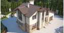 Высокие эркеры, асимметричная крыша, большие окна, мансарда и балконы — создают привлекательный экстерьер и уютный светлый интерьер. Положительное впечатление довершает эффектная отделка из камня и штукатурки, усиленная коричневой металлочерепицей.