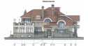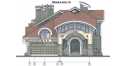 Заметной чертой экстерьера являются разнообразные арки, которые присутствуют на фронтонах и окнах. Входная группа 29 м2 выполнена в виде глубокого арочного портала. К другим примечательным моментам отнесем полукруглый эркер — снизу в каменной облицовке, сверху остекленный; зимний сад, увенчанный большим балконом; вместительную открытую террасу со светильниками по периметру.