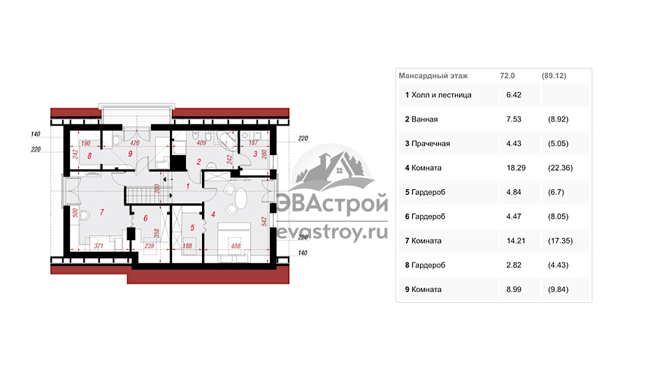 Этажность: 2 (вкл. Мансардный);
