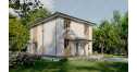 Этот двухэтажный дом привлекает простыми и аккуратными линиями, сдержанным внешним видом и четко продуманной планировкой. Подходит для комфортного проживания семьи, включающей двух детей. Дом выполнен в европейском стиле, а его форма позволяет идеально вписаться в узкий участок. Общая площадь — 177.4 м2.