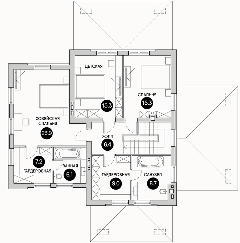 256 м2Именно так в большинстве случаев можно охарактеризовать здания квадратной формы. При этом вам не придется себя в чем-то ограничивать в смысле внутренней планировки. Дело в том, что именно проекты квадратных домов при внешней простоте открывают огромный простор для осуществления практически любых замыслов, поэтому строения редко получаются похожими одно на другое. И каждое отличают уют и грамотная планировка, рационально распределяющая внутреннее пространство.