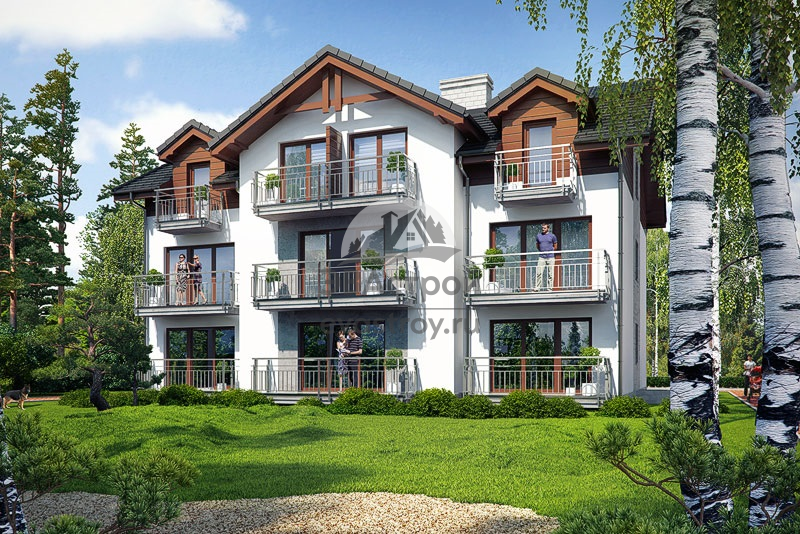 Как правило, данные строения создаются в очень лаконичном и функциональном стиле. Количество квартир в таких домах варьируется. Широко распространены как проекты таунхаусов на 2 семьи, так и здания, предназначенные для проживания большего количества семей. Обычно все блоки в дом одинаковы или имеют зеркальное расположение. Заказывая индивидуальный архитектурный проект такого дома, стоит, обратить внимание на места общего пользования и оценить, насколько вас устроит такое соседство.